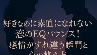 恋愛 好きなのに素直になれない恋のEQバランス!感情がすれ違う瞬間と心の整え方 EQで読み解くすれ違う恋の心理。感情のバランスを整えて、素直な愛を育むための3つのステップを紹介します。 2025.11.05 恋愛